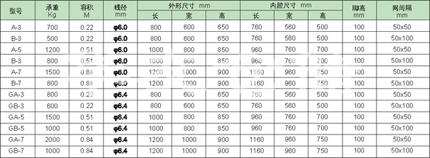 倉儲(chǔ)籠的外形感覺輕巧,籠體除底框外皆有鐵絲碰焊成的網(wǎng)片組合而成,網(wǎng)片與網(wǎng)片、網(wǎng)片與底框靠小連接件連接,可活動(dòng)。倉儲(chǔ)籠空籠時(shí)可折疊存放,充分利用空間。倉儲(chǔ)籠前后面可打開,在堆垛后能取物,堆垛時(shí)承重在側(cè)面的網(wǎng)片上。倉儲(chǔ)籠目前已完全具備可堆垛性、可折疊性及可搬運(yùn)性,日益成為物流流通的一種重要的標(biāo)準(zhǔn)物流容器。